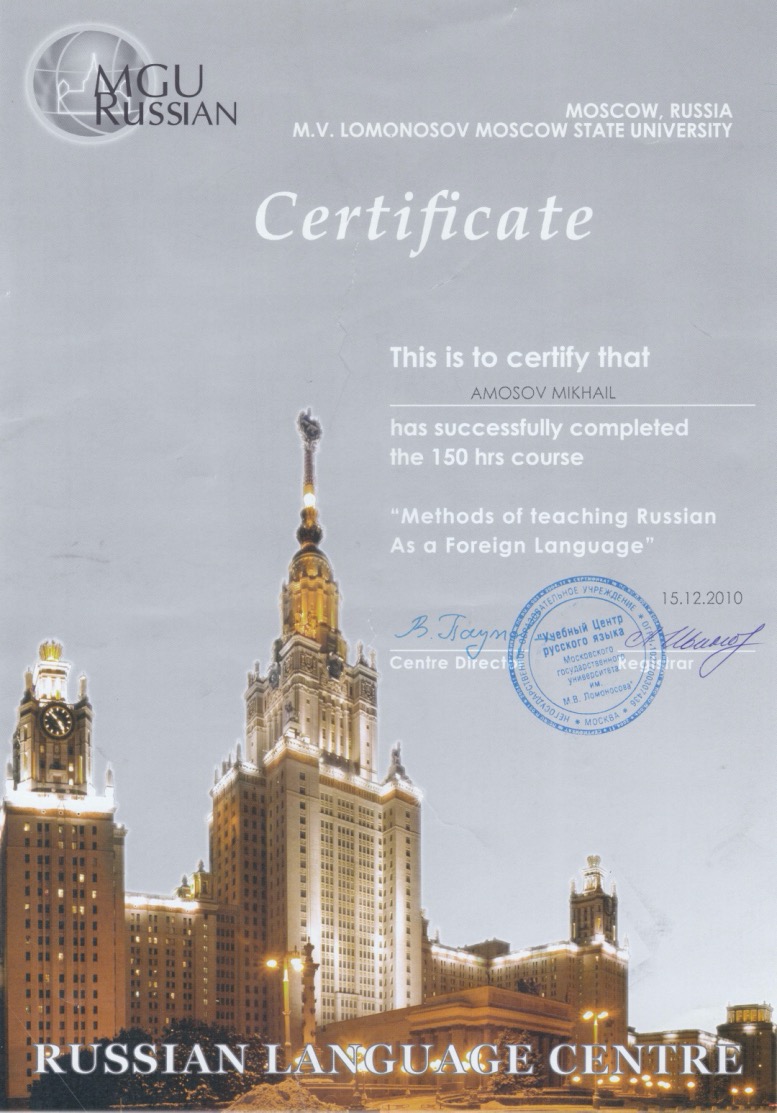 Mi chiamo Mikhail Amosov e sono russo. Insegnante madrelingua, laureato, certificato e appassionato dell'insegnamento della mia amata lingua!